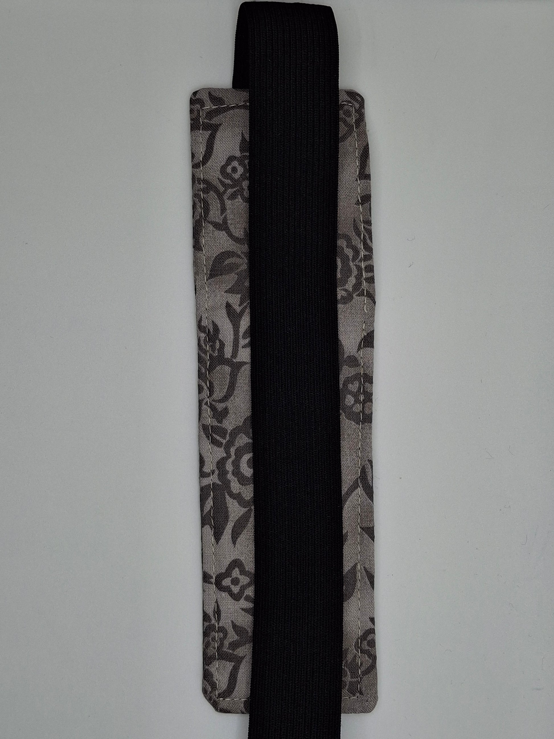 Penholder/Bookmark - Gray Floral Tone - Black Elastic