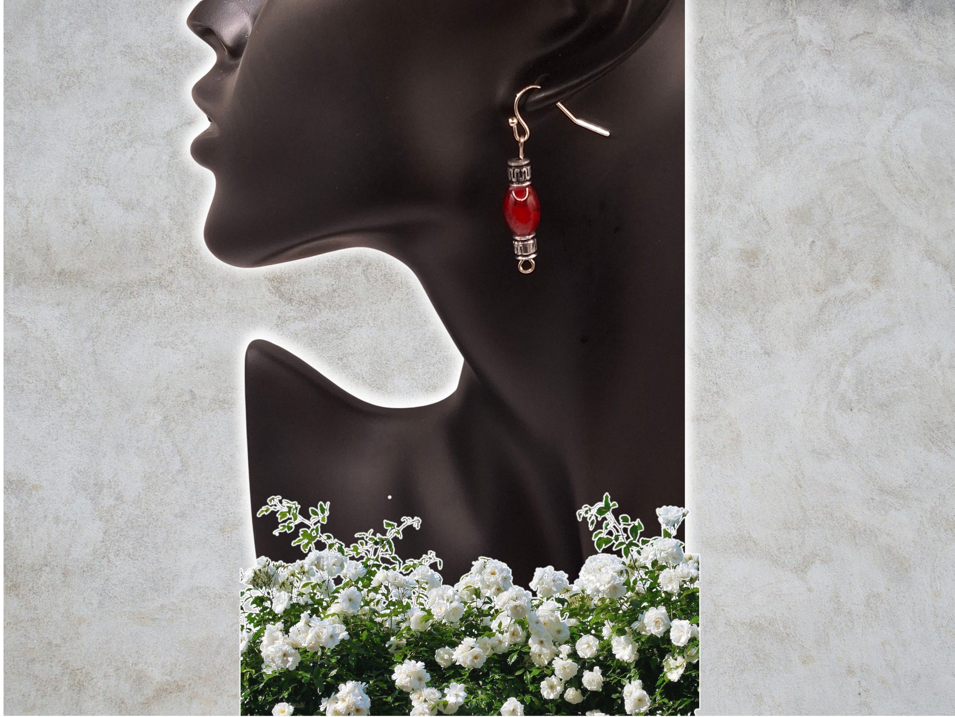 Silver-tone Zigzag Bookmark with Deep Red Marbled Beads, Spacers, and Book Charm with Earrings